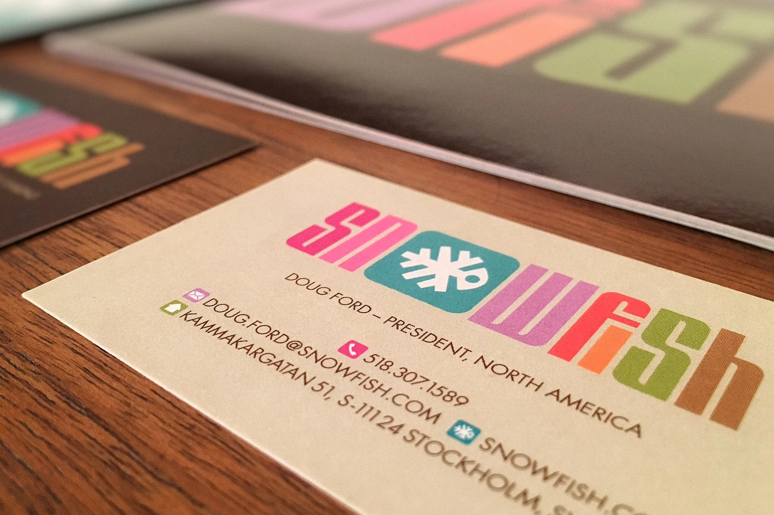 The Snowfish logo was animated to showcase all four content categories as well as the snowfish brand icon. In print it was used in all five versions, depending on the context.
